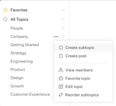Slab Home provides a centralized place where you can quickly access your favorite and recently-viewed posts. You can also perform actions like creating a new post, visiting Slab, or getting help.